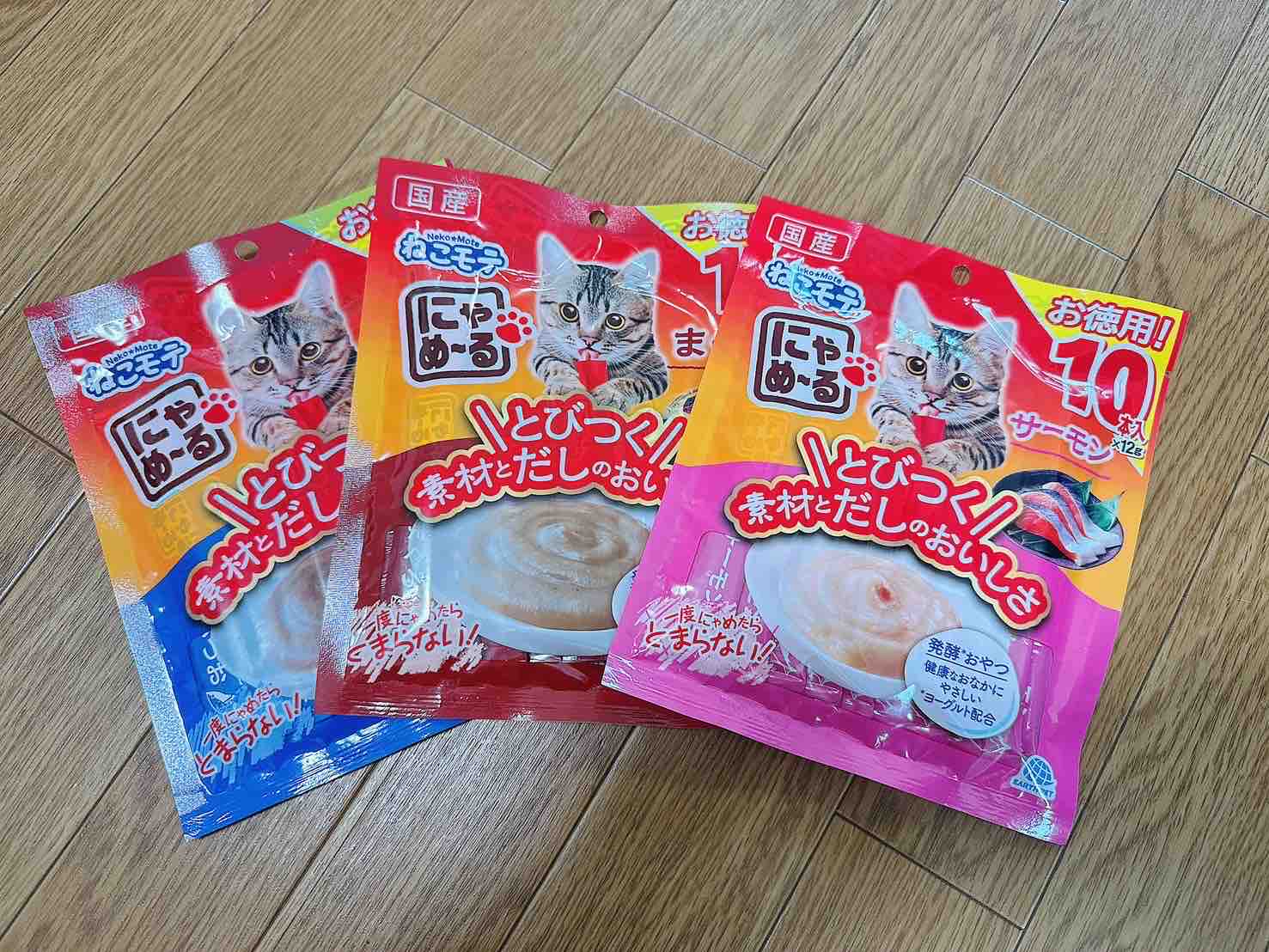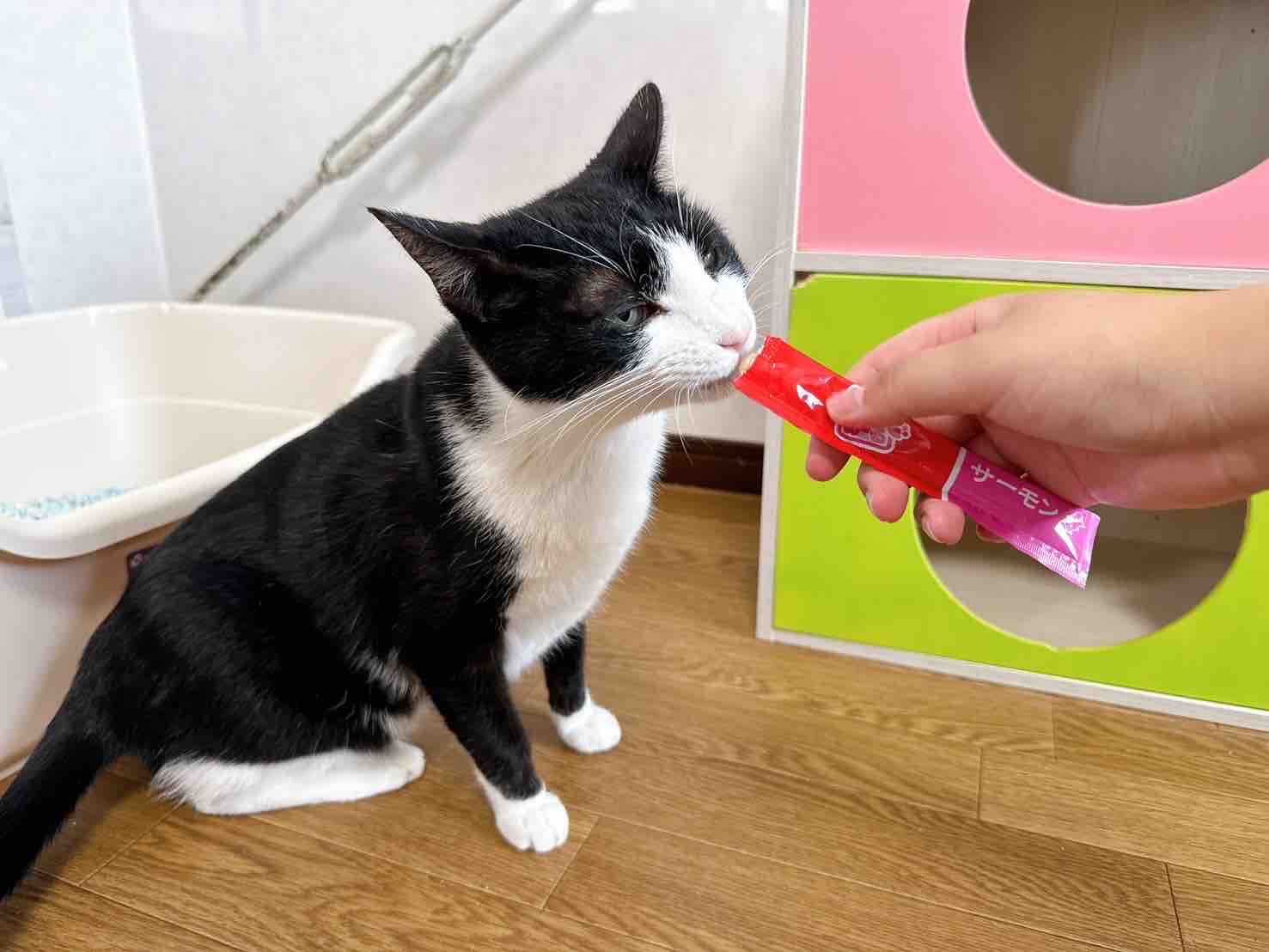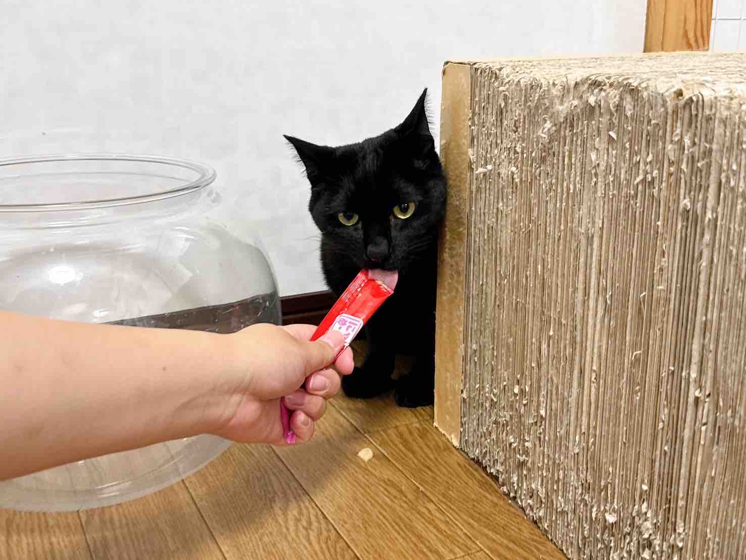 指にのせたちゅーるをペロリと