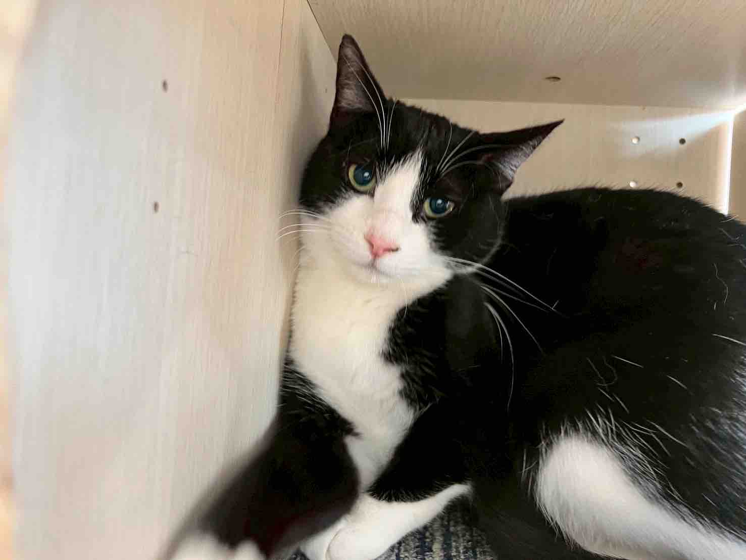 棚の中からひょっこり顔を出して